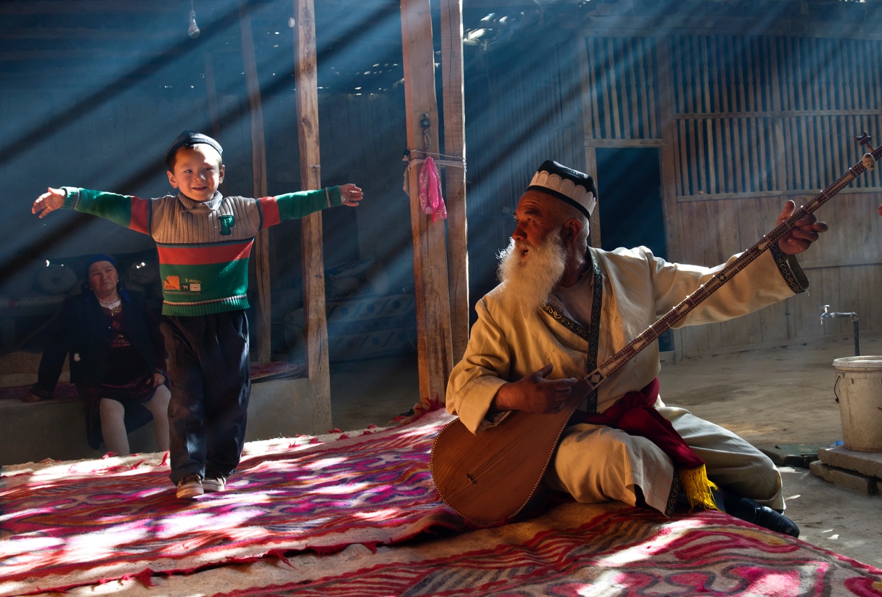 一教一学,一弹一跳,爷孙俩的传承让维族尔族的麦西热甫焕发新的活力。