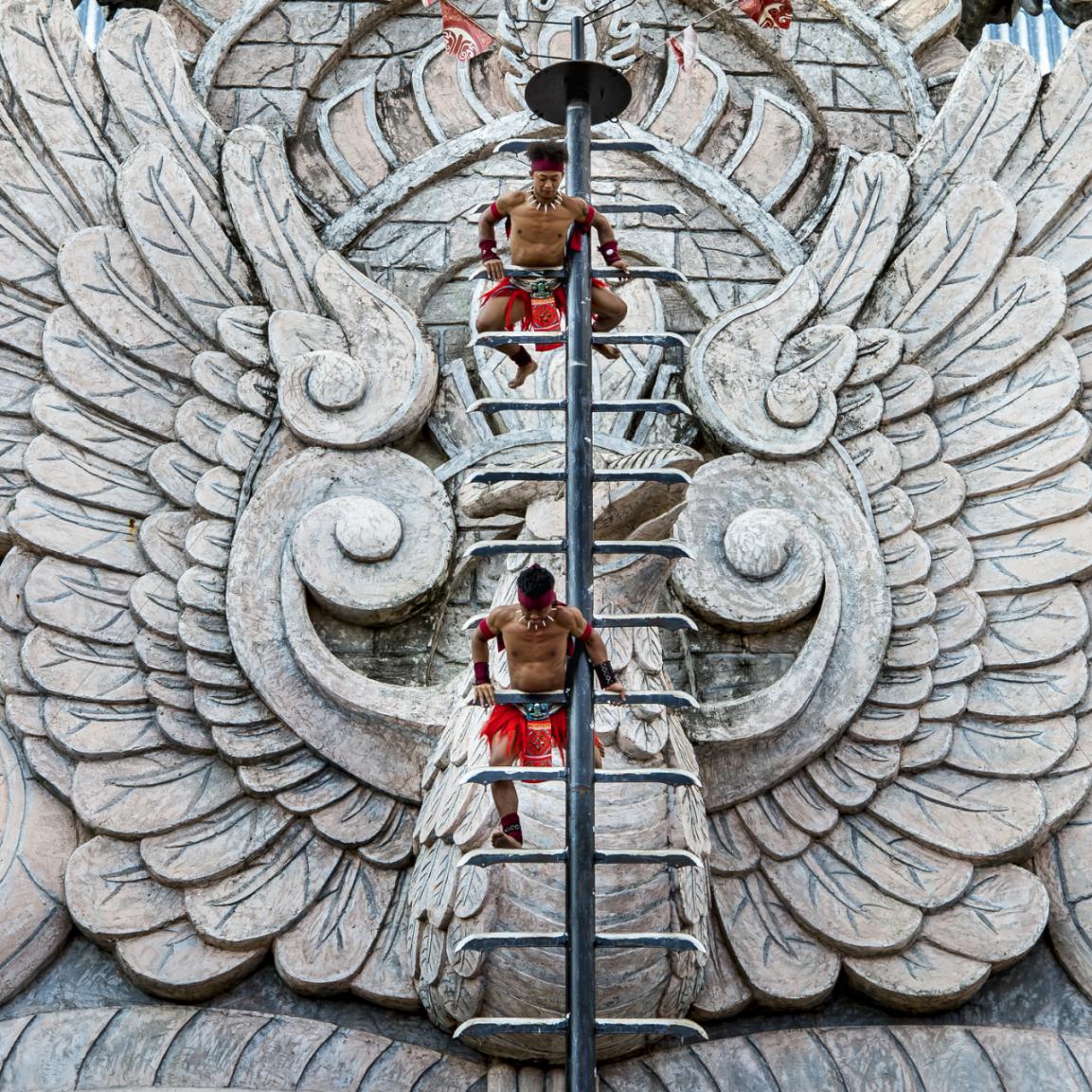 赤脚、光膀,双手抓住银光闪闪、寒气逼人的刀刃步步登高,则是苗族人勇气的体现。