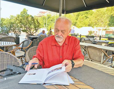 莫拉夫奇克在翻阅自己的著作。本报记者 于 洋摄